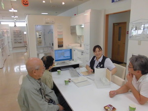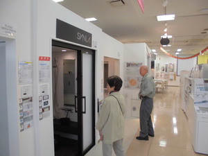 既存の浴室内に入るUBの規格寸法や、お客様がどのような機能を求めているか(今回は手洗器付など)などはカタログを見て頂いたり現場調査の時に分かりましたので、次のステップでそのカタログから選んでいただいた商品メーカーのショールームにお越しいただいて、展示されている実物を見て浴室の大きさを確認していただいたり、触っていただいたり、お風呂なので浴槽に入って入り心地など確かめていただいたりしました。