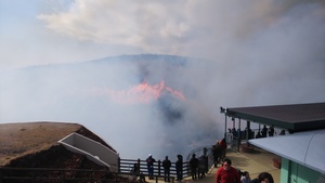 ロープウェイで山頂まで登ると山焼きを見ようと大勢の人が見に来てました。